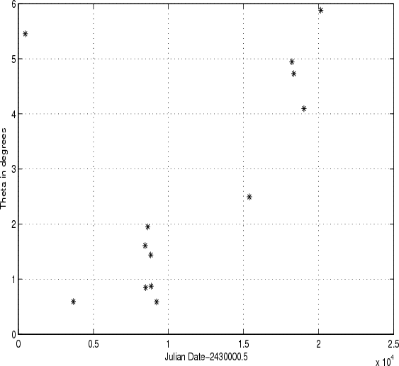 Several facts emerge from a study of Tables 2-4 and Figs. 5 and 6. The two least squares solution do not differ greatly from one another, although the TLS mean errors are in general higher than those from OLS. This is true in general; see Branham (1999). But given the greater complexity of a TLS solution, especially should one opt for an error-free right-hand-side, it hardly appears worthwhile to go to the extra effort to calculate a TLS solution versus the relatively easy OLS solution.