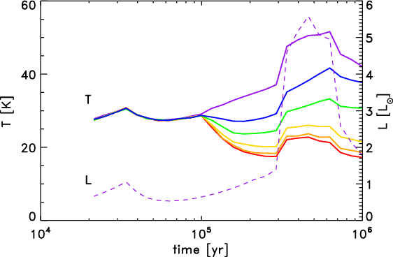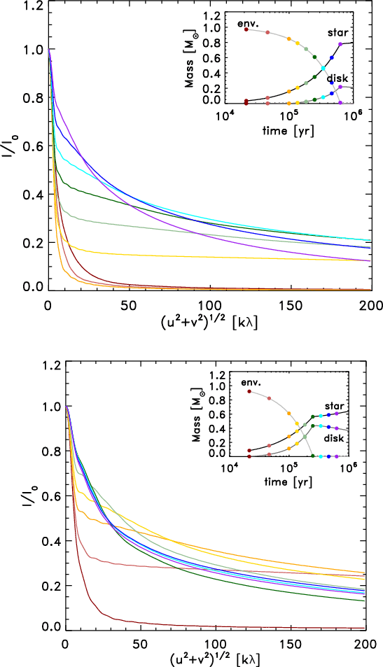 and growth of the disk and star and the dissipation of envelopes. Our