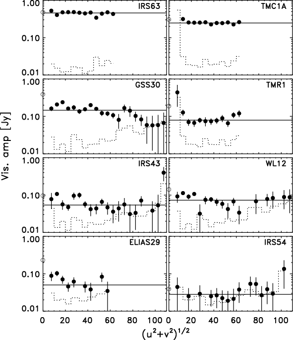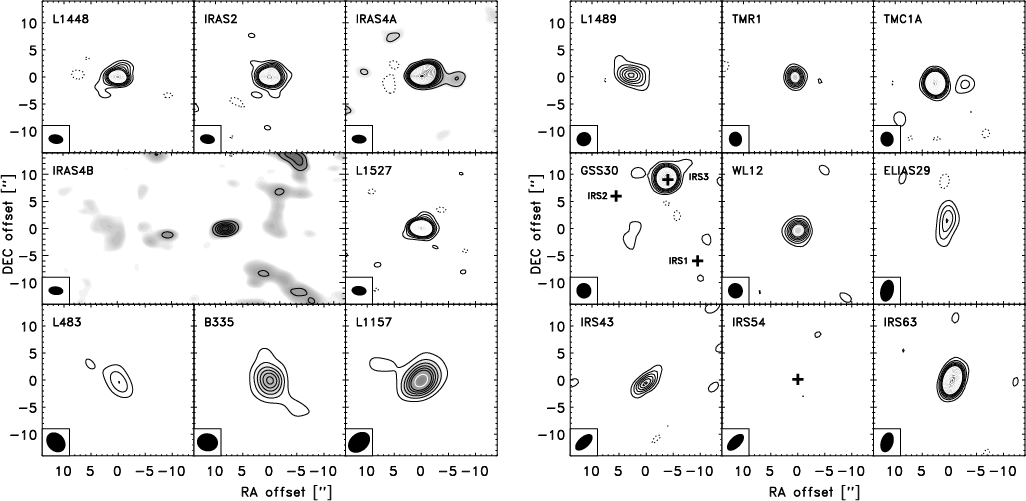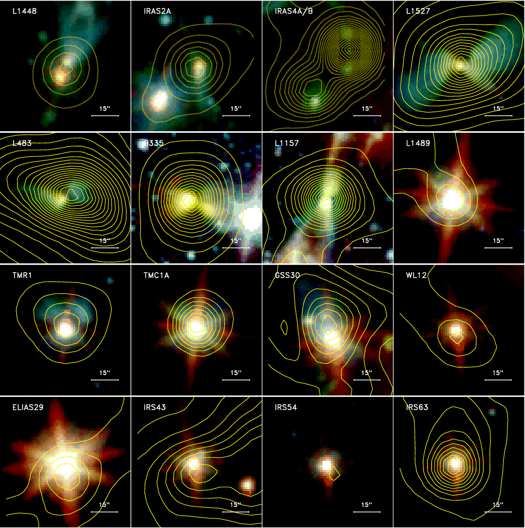 continuum emission from the envelopes and disks, and from that