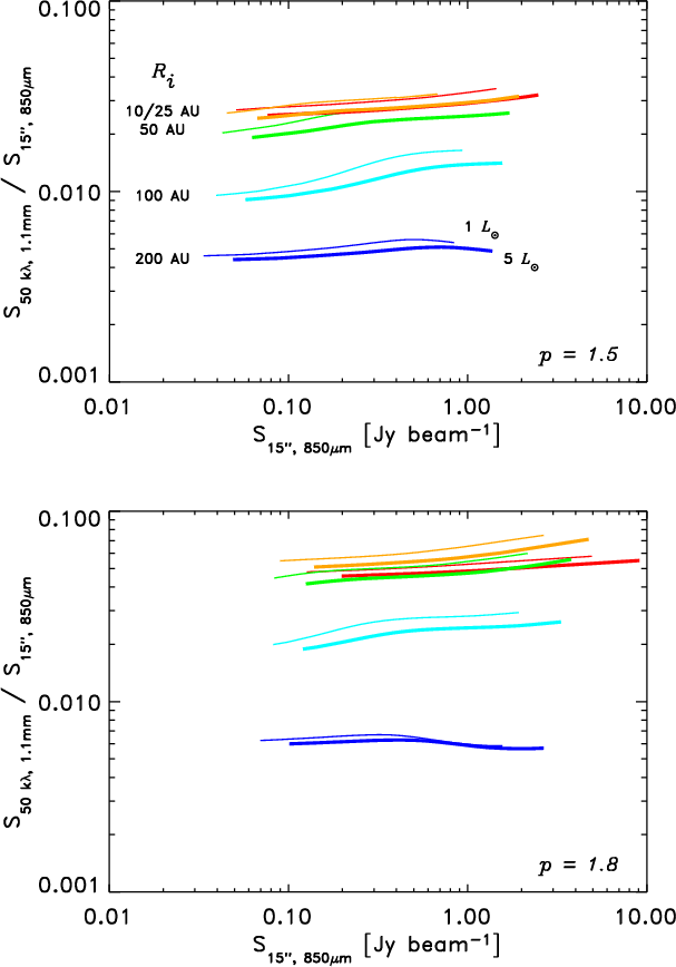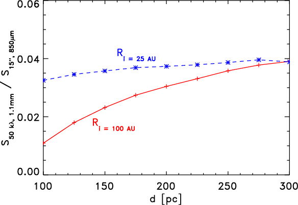 Ratio of interferometric fluxes (1.1 mm flux at 50 k |