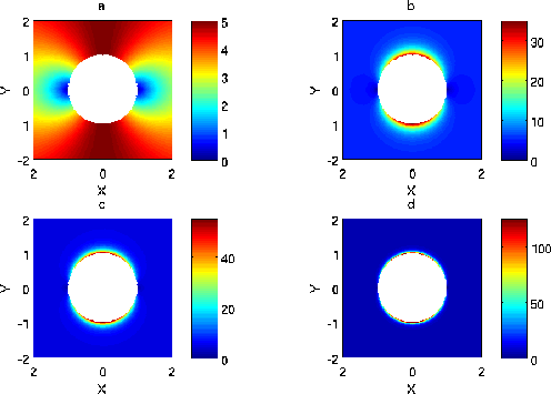 velocity, density and pressure fields in a plasma flow around a cylindrical
