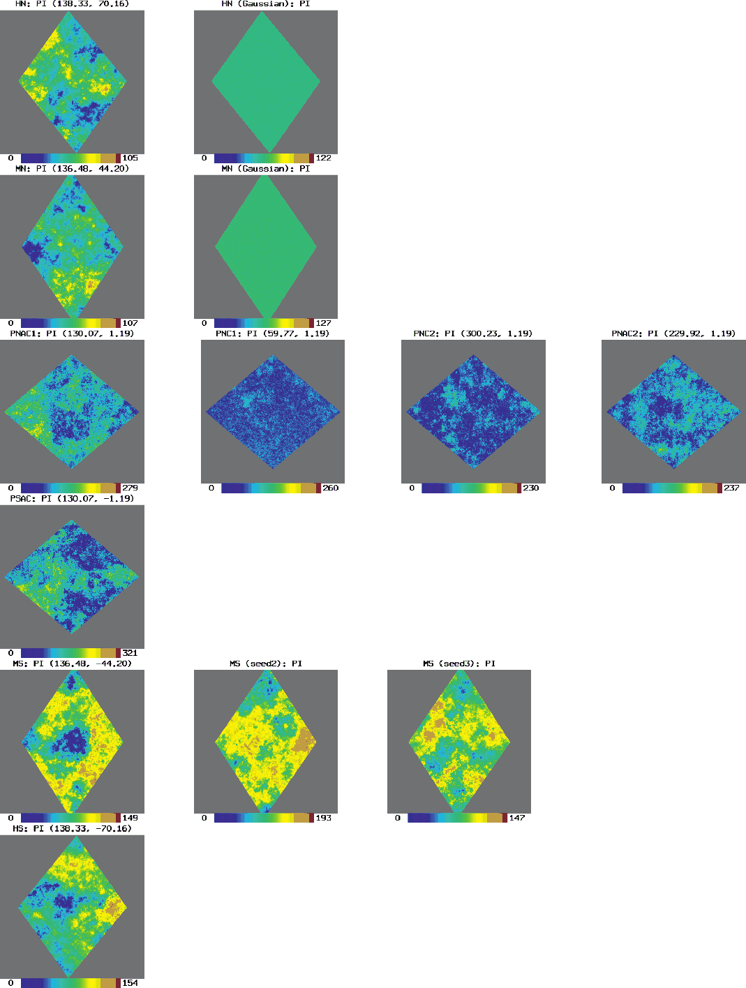 Figure B.4: As Fig. B.1, but for PI maps calculated from the simulated U and Q maps. |