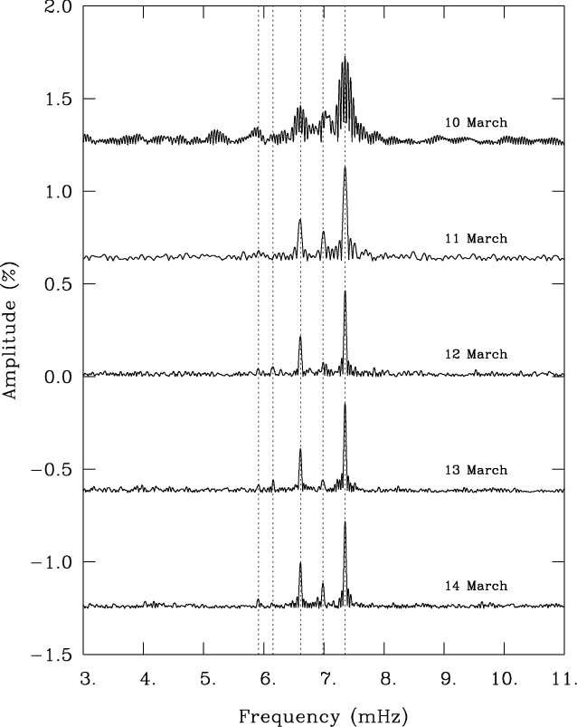 On the observational side, much remains to be done. Although we were allocated 5 nights of observations on a medium-size telescope using a highly sensitive imager, we detected only 5 independent harmonic oscillations. As a result of this, we were forced to make some assumptions as to the mode identification based purely on visibility arguments. A longer time baseline allowing us to analyse the rotational signature and/or multi-colour information would yield partial mode identification, making such assumptions unnecessary. Moreover, an increased sensitivity would provide additional secure frequencies, strengthening the robustness of the asteroseismic solution. Possible avenues for future observational campaigns include space telescopes designed for asteroseismology such as Kepler or Corot, and networks of small telscopes providing world-wide coverage. An alternative is to obtain shorter high quality data sets on large telescopes, however there is currently little instrumentation available for fast time-series imaging. We remain hopeful that this will change in the near future, e.g with the second-generation suite of instruments on the VLT or the new instrumentation for GTC.