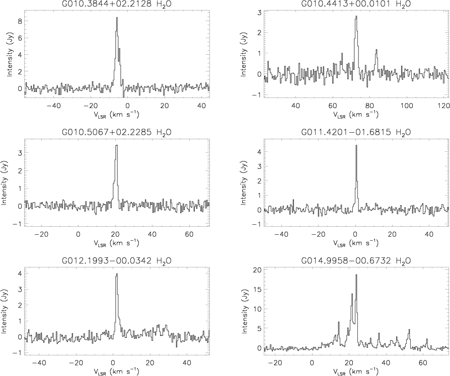 75%). We present plots for all detected H2O masers and tabulate their properties.