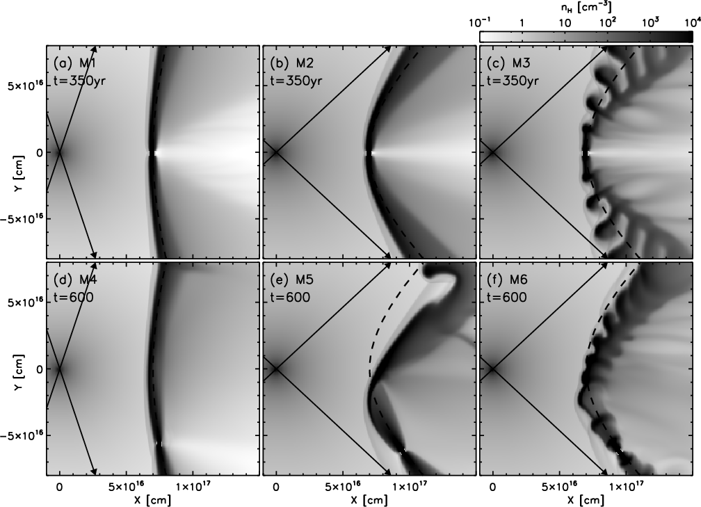 The paper is organized as follows. The analytic model of Raga et al. (2009a) is summarized in Sect. 2. The setup of the numerical simulations is described in Sect. 3. A description of the results and comparisons with the analytic model of Raga et al. (2009a) are presented in Sect. 4. Predictions of observable quantities are discussed in Sects. 5 and 6. Finally, the results are summarized in Sect. 7.