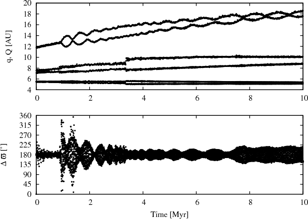1995; Hahn & Malhotra 1999). They migrate, together with Uranus and