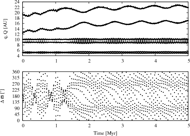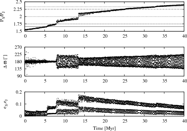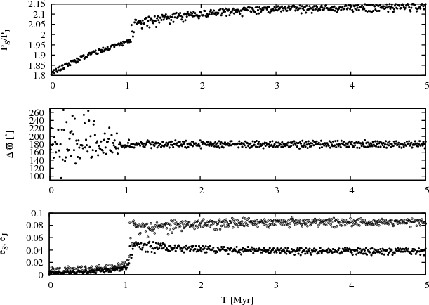 Figure 6: Similar to Fig. 3 but after the 2:1 resonance crossing. |
