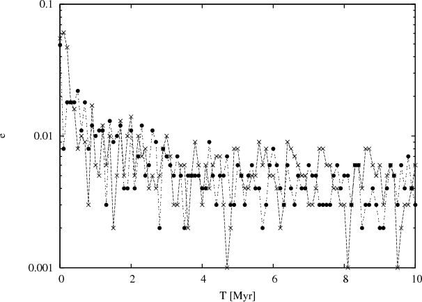 provides an example of the eccentricity evolution of Jupiter (bullets)