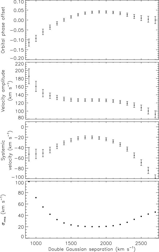 for RVs measured with a range of separations using the double