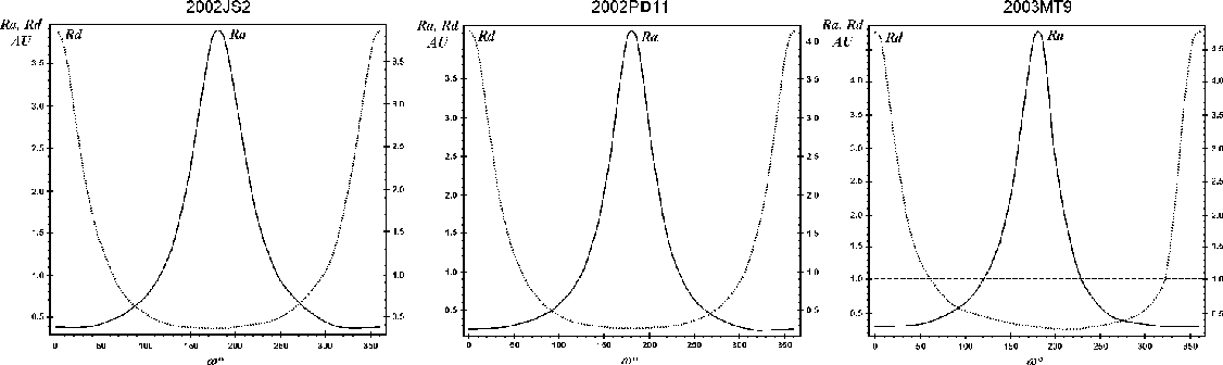 with the three NEAs 2002JS2, 2002PD11, and 2003MT9 and also the