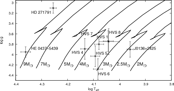 Stars travelling so fast that they escape from the Galaxy are an inevitable consequence of the presence of a supermassive black hole (SMBH) in a dense stellar environment (Hills 1988) such as the Galactic centre (GC). Hills (1988) coined the term hyper-velocity star (HVS) for such an object. It took a long time until Brown et al. (2005), Hirsch et al. (2005) and Edelmann et al. (2005) discovered the first three HVSs serendipitously and the interest in these stars grew tremendously. Systematic searches for HVSs took advantage of the huge SDSS database (Adelman-McCarthy et al. 2008) for target selection and revealed a population of HVSs; the latest compilation lists 16 of these stars (Brown et al. 2009a). These surveys are based on RV measurements alone. The known HVSs are non-uniformly distributed on the sky, as are their travel times. Brown et al. (2009b) argue that this anisotropy supports their common origin being the Galactic centre, while Abadi et al. (2009) point out that the overdensity of HVSs in the constellation Leo suggests that the anisotropic distribution and preferred travel time are the result of the tidal disruption of a dwarf galaxy in the Galactic potential.