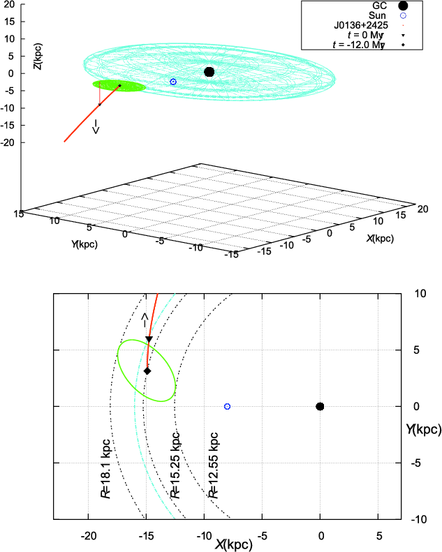 the spectroscopic distance, the trajectory of the star in the Galactic