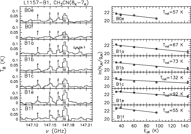 The CH3CN observations of L1157-B1 were obtained in