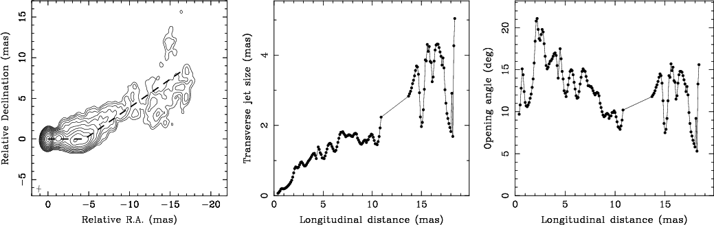 determined the apparent opening angles by analyzing transverse jet