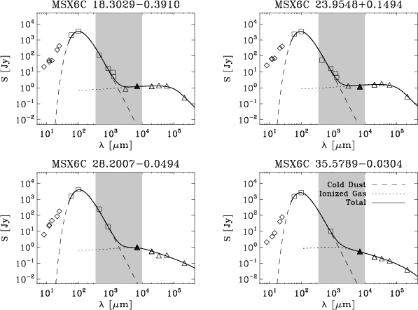 and summed the ionized-gas (free-free radio emission) and dust (thermal
