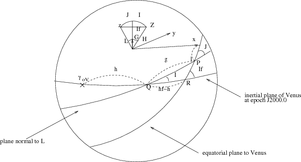 Earth (Sect. 2). We explain the parametrization of the rotation of a rigid Venus using the Andoyer variables (Sect. 3). We then determine the reference points and planes to study the rotational dynamics of Venus (Sect. 4).