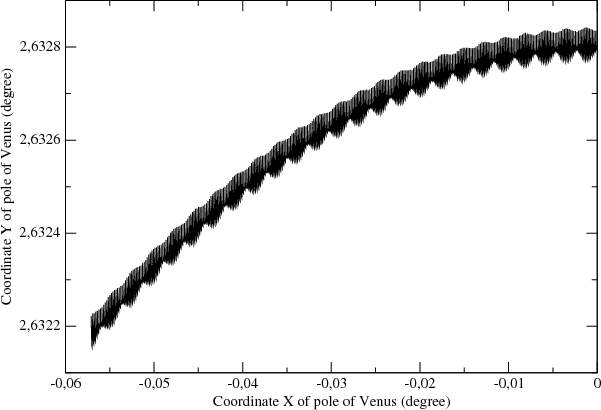Figure 6: Motion of the orbit of Venus at the date t with respect to the same orbit at J2000.0. |