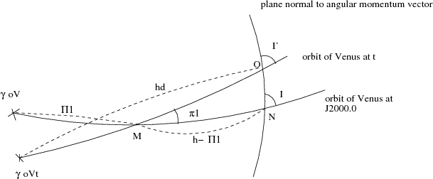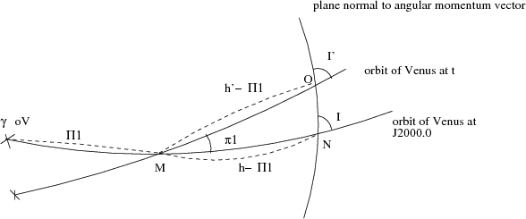 orbit of Venus at t with respect to the orbit at J2000.0, through the parameters