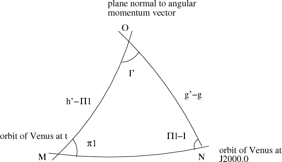 Figure 7: Motion of the orbit of Venus at the date t with regard to the same orbit at J2000.0. |