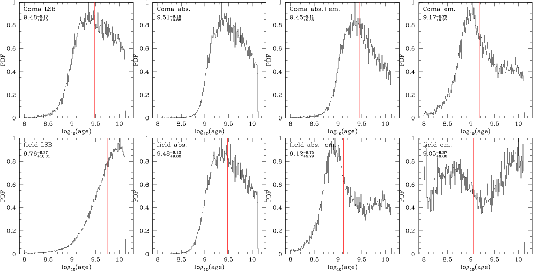 characteristics of Coma dwarf galaxies show that red or absorption line
