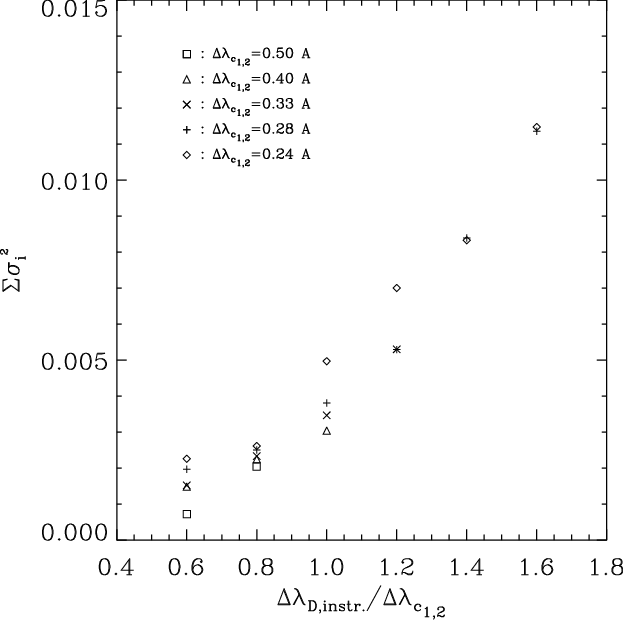 In this approach, M and I are one-dimensional arrays, and inserting them into Eq. (5) yields the least squares solution of one element of ZI at a given velocity grid point. Equations (6) assume that there are no blended lines or more precisely that there is only a contribution to Z from one line at a time. The effect of blends is assumed to be averaged statistically. However, in general a measurement at wavelength