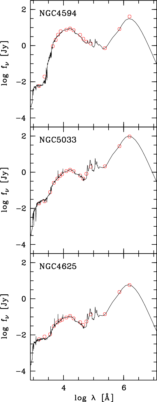 Concerning the stellar SEDs we have decided to focus on the models of Maraston (2005), since they consider the thermally pulsating asymptotic giant branch (TP-AGB) stars