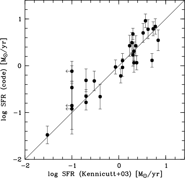 - Unfortunately, the completely different parameter set and a significantly different selection of test galaxies from SINGS impedes a qualitative and quantitative comparison of our code results to those of da Cunha et al. (2008).