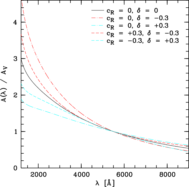 Maraston (or PEGASE) stellar population models, synthetic attenuation