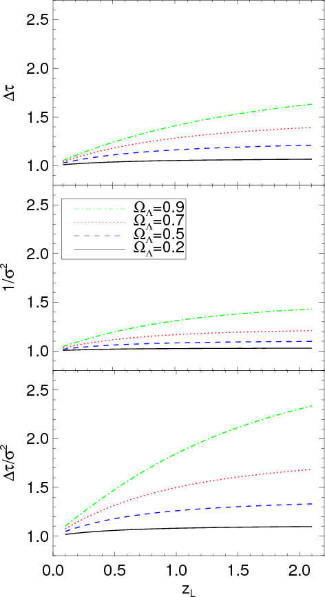 . In Fig. 1 we illustrate the dependency on the lens redshift of the measurables, time delay