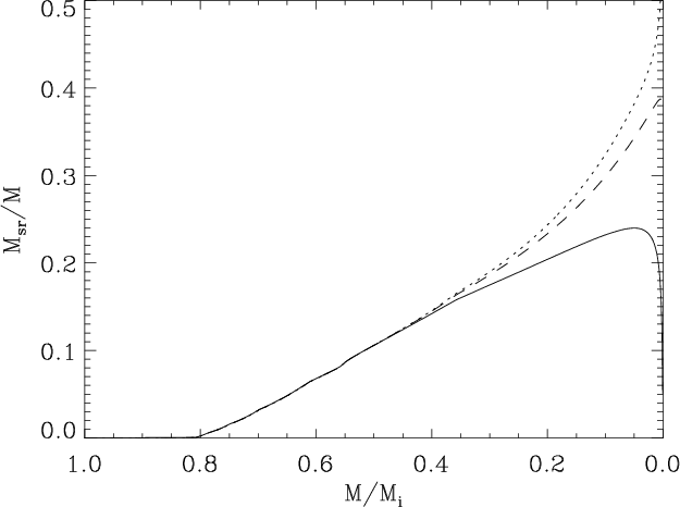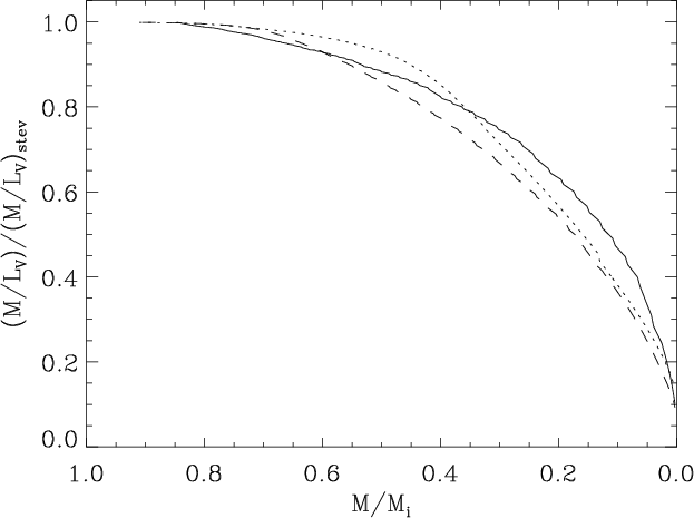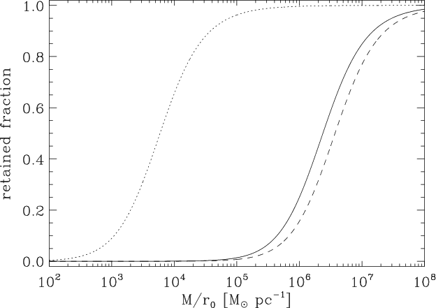 - This form assumes that the increase of the fraction of the mass loss that is stellar mass-dependent scales with the total dynamical mass loss, which is a compromise between a step function and a linear increase.