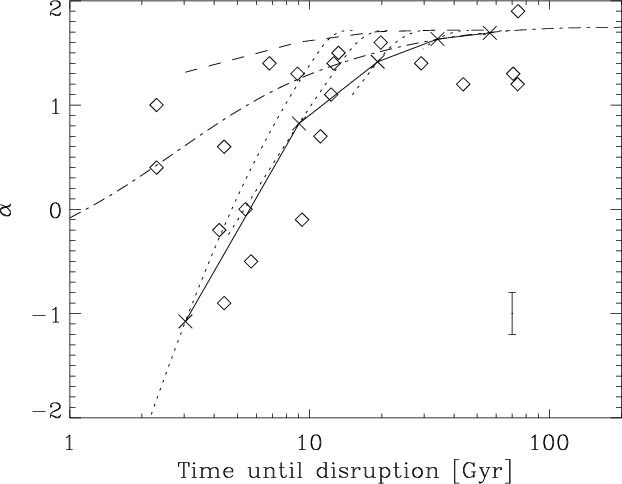 (e.g. Gieles & Baumgardt 2008; Baumgardt & Makino 2003; Baumgardt 2001). It is found that x=0.75-0.80, depending on the concentration (
