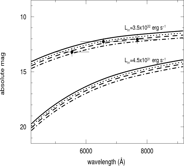 1032 - 1033 erg s-1) and their optical luminosity drops by as much