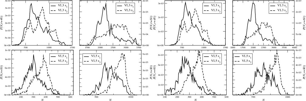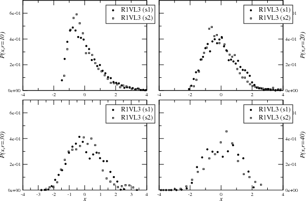 Figure 21: The self-averaging test for the mock catalogs. It is analysis of the PDF into two disconnected subvolumes (s1 and s2) of the mock sample R1VL3 in redshift-space. |