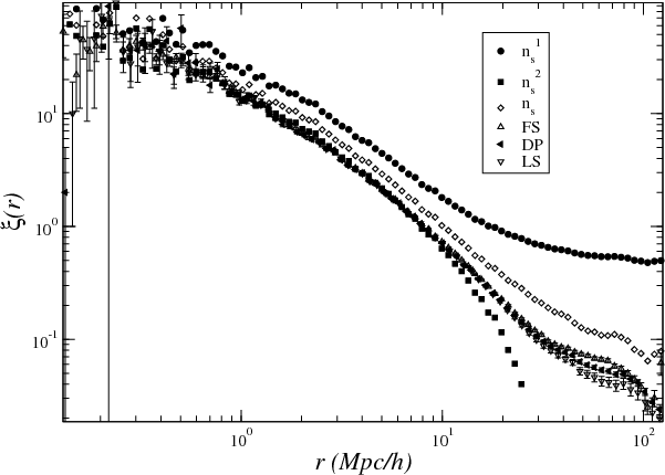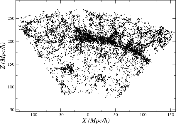 There has been an intense debate about the most suitable statistical methods for characterizing galaxy properties, particularly galaxy correlations (see Sylos Labini et al. 2007; Wu et al. 1999; Baryshev & Teerikorpi 2006; Joyce et al. 2005; Gabrielli & Sylos Labini 2001; Davis 1997; Vasilyev et al. 2006; Sylos Labini et al. 2009a,b; Pietronero et al. 1997; Joyce et al. 1999a; Sylos Labini et al. 2009c; Hogg et al. 2004; Sylos Labini et al. 1998; Pietronero 1987). The most suitable statistical method for characterizing the properties of a given stochastic point process depends on the underlying correlations of the point distribution itself. There can be different situations for the statistical properties of any set of points (in the present case, galaxies) in a finite sample. Let us briefly consider four different cases. Inside a given sample, the galaxy distribution is approximated by a uniform stochastic point process, or in other words, inside a given sample the average density is well-defined. This means that the density, measured for instance in a sphere of radius r randomly placed inside the sample, has small fluctuations. In this situation the relative fluctuations between the average density estimator and the ``true'' density is less than unity. Density fluctuations may be correlated, and the correlation function can be (i) short-ranged (e.g., exponential decay) or (ii) long-ranged (e.g., power law). In other words these two cases correspond to a uniform stochastic point process with (i) short-range and (ii) long-range correlations.