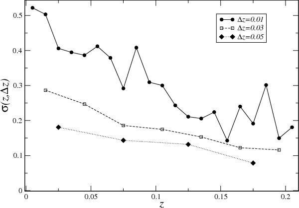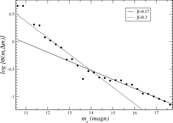 - In Appendix B we discuss how several properties of galaxy fluctuations can be measured in the magnitude-limed sample by considering galaxy counts as function of apparent magnitude and the redshift distribution. This study has the advantage of using direct observational quantities. It is interesting to note that these studies are compatible with the results presented in this section.