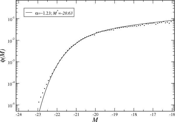 - Note that these authors use E(z)=1.6(z-0.1) to construct the absolute magnitude M0.1r, corresponding to the SDSS band shifted to match its rest-frame shape at z = 0.1, from the apparent magnitude mr and redshift z by using Eq. (8). In this case the Kr(z) term is the K-correction from the r band of a galaxy at redshift z to the 0.1r band. Because here we use Kr(r) at z = 0 instead of at z = 0.1 the evolution correction has to be shifted by 0.1 in redshift.