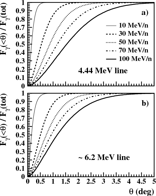de-excitation lines should be emitted from a region with a maximum 5