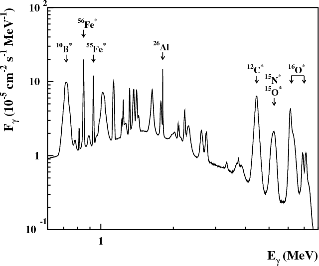 gamma-ray lines produced by nuclear interactions of these energetic