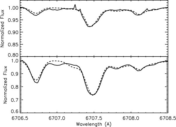 are the only 13 stars with a detectable lithium line (6767.18 Å)