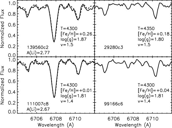 Results. We find 13 stars with a detectable Li line, among which 2 have abundances