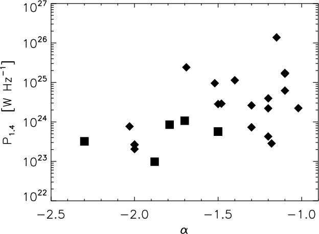 sense that smaller relics have steeper spectra. Furthermore, larger