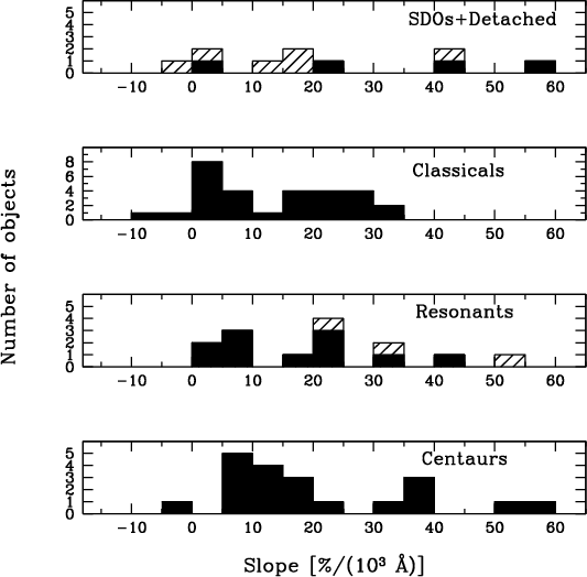 Table 2: Spectral slopes values of TNOs and Centaurs.