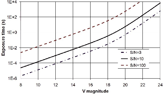 Figure 5: The calculated exposure time to reach a wanted SNR in the V band. |