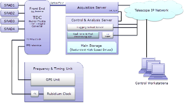 Even state-of-the-art non-imaging photon-counting detectors are unable to achieve the performance required: photomultipliers have the drawback of needing high voltage and specific timing electronics, and are of relatively low quantum efficiency. SPADs have extremely good timing accuracy, can sustain fairly high count rates, have a resonably high quantum efficiency, and low dark count, but also have a small sensitive area that is usually very difficult to couple with a star image given by a large telescope.