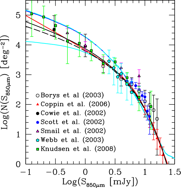 (Barger et al. 1998; Smail et al. 1997; Eales et al. 1999; Hughes et al. 1998).