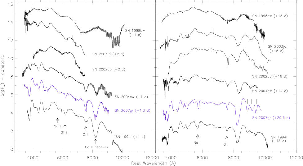 Key words: supernovae: individual: SN 2007gr - techniques: miscellaneous - supernovae: individual: SN 2002ap - supernovae: general