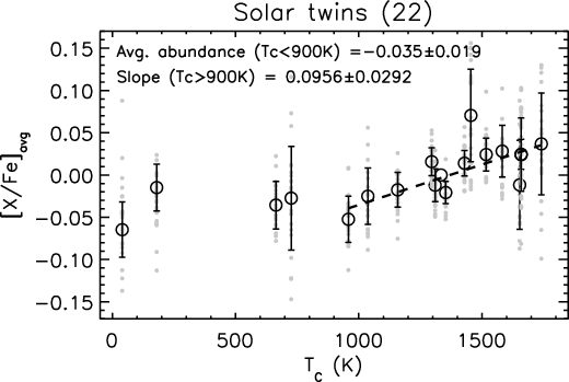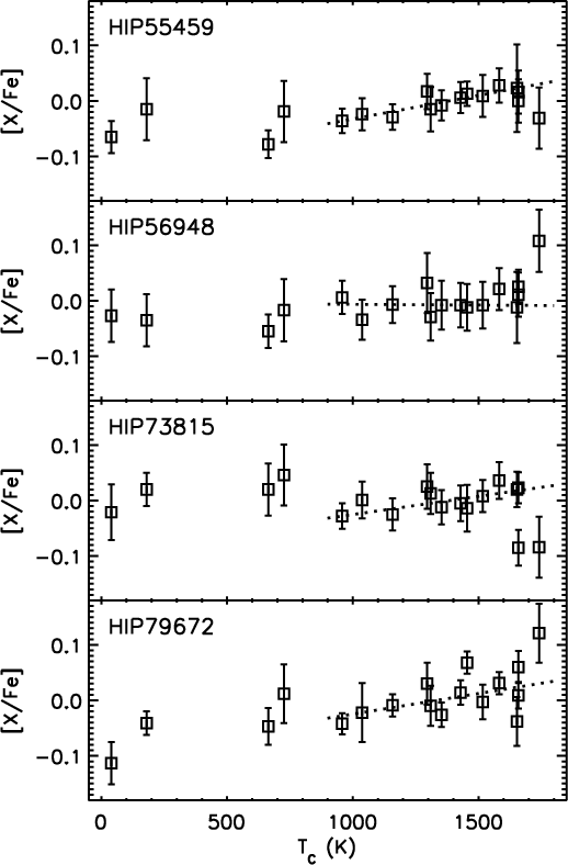 significant correlation between [X/Fe] and condensation temperature (
