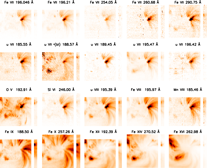 The strongest transitions from Cr VI, Cr VII, Cr VIII, Mn VII, Mn VIII, Mn IX, were identified by Gabriel et al. (1965) and are also observed in the EIS spectra.