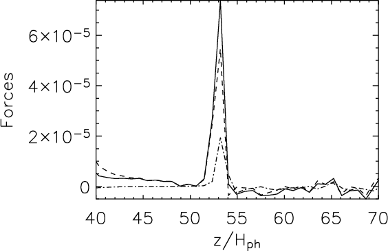 at the height of a flux tube during its rise. Figure 6 illustrates this by displaying the (non-dimensionalized) vertical forces as a function of height at