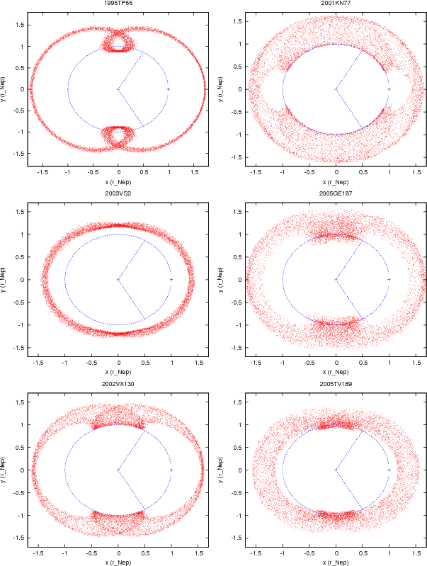 with orbital eccentricities smaller than 0.1. Roughly they co-orbit with Neptune